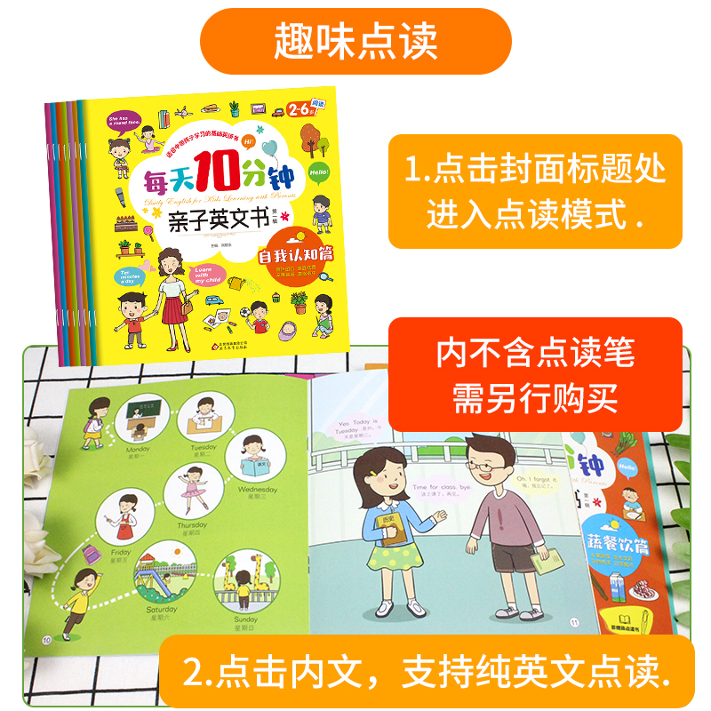 Small Got Talent to read pen matching books Daily 10 min parent-child English books All 8 volumes Baby Enlightenment Cognitive Early Teaching Kindergarten 4-5-6 English Books