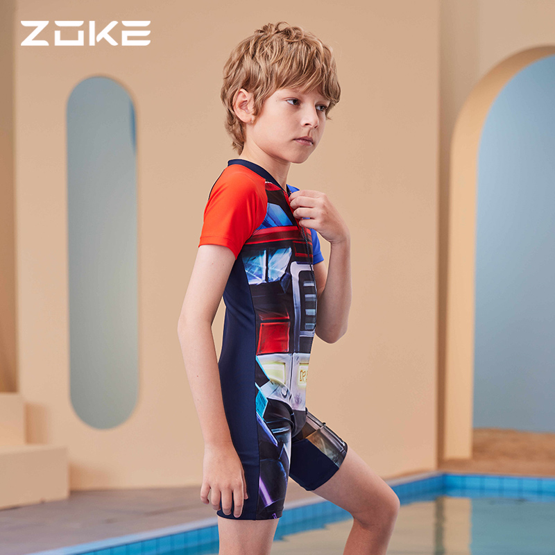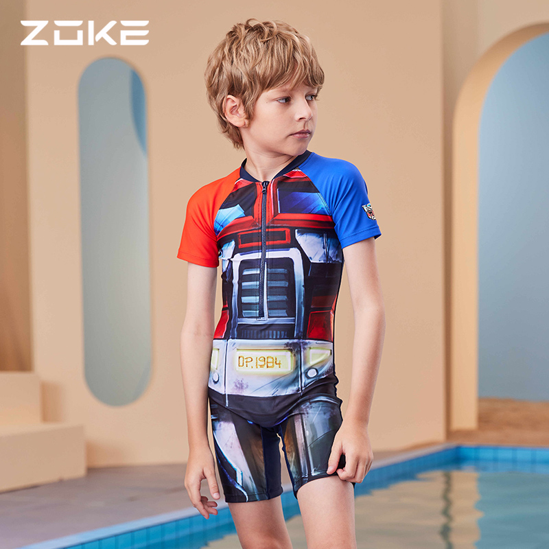 ZOKE Zook Boys Breaky Sleeve Purple Blue Transformers in Big Child Beach Resort Sun Swimsuit