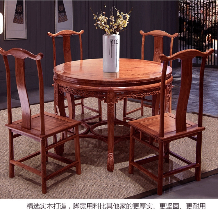 Red Wood Furniture Flowers Pear Wood Tinged Hedgehog Purple Sandalwood Round Table Dining Table And Chairs Combine Small Family Style Dining Room Round Table
