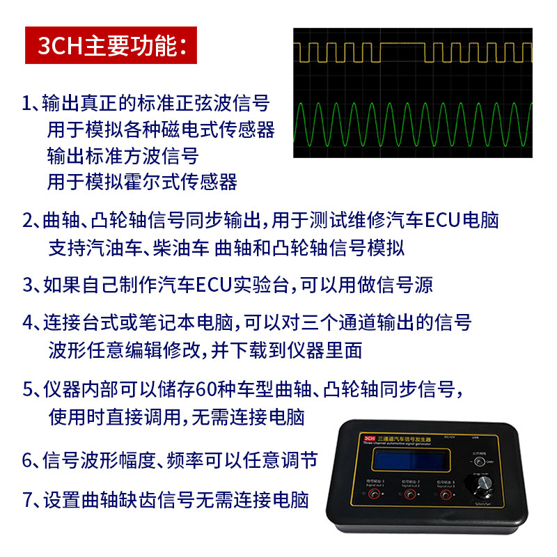 Three-channel car signal generator crankshaft camshaft sensor simulator car ECU computer repair CH