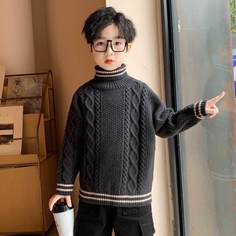 Boys sweater pullover plus velvet thick autumn and winter clothing 2022 new children's middle and big children Korean version of the Western style high collar children's clothing