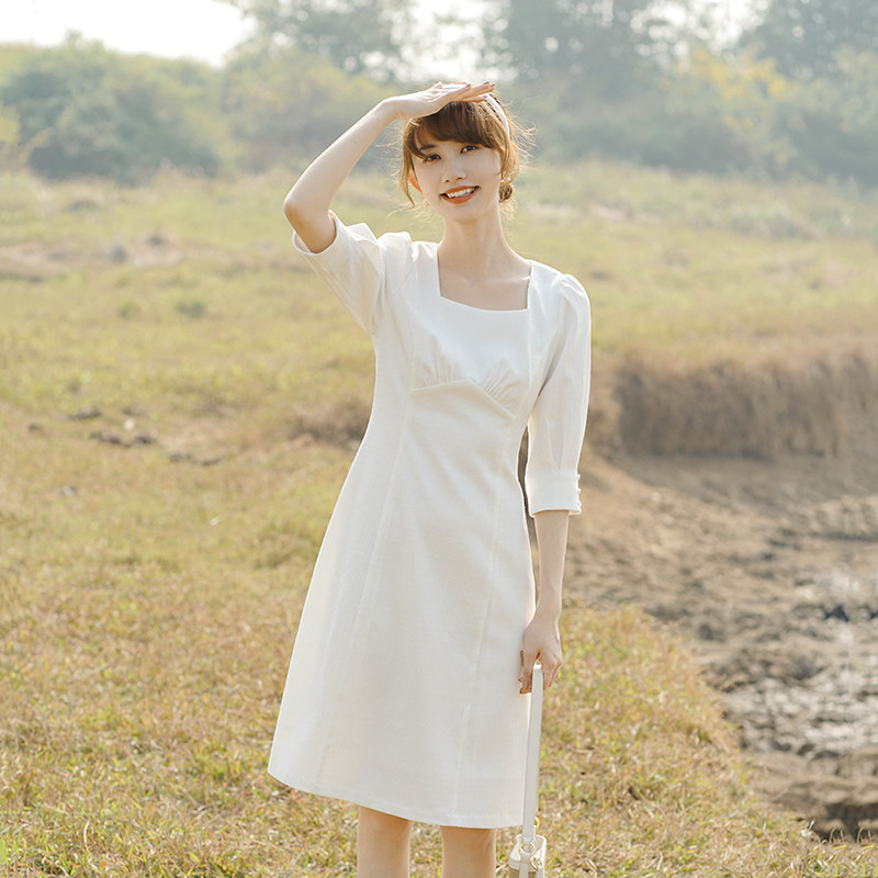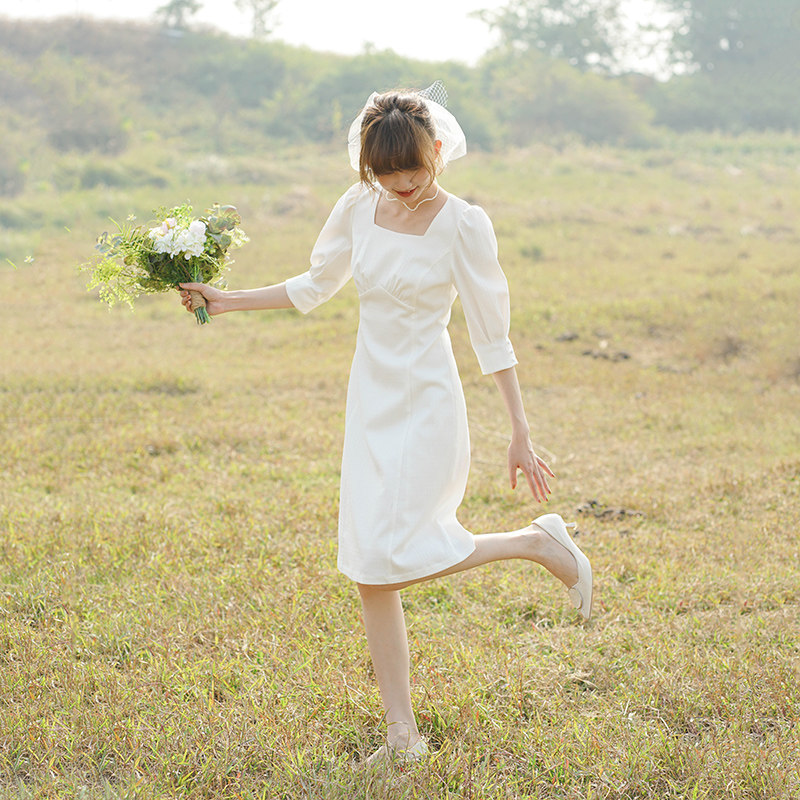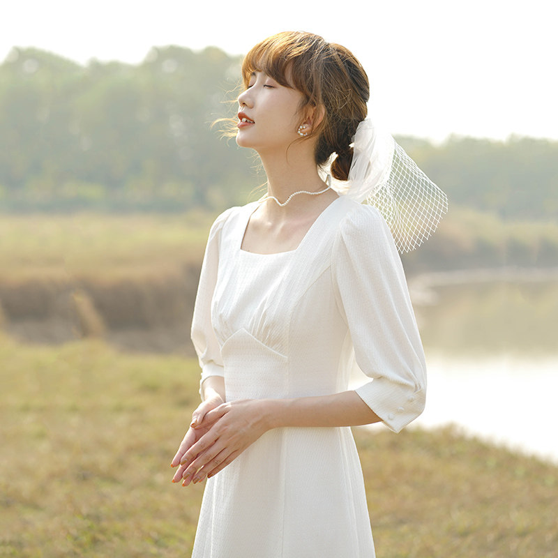 Please Mr. Xia French light wedding dress simple engagement marriage license small dress appear thin medium long version dress
