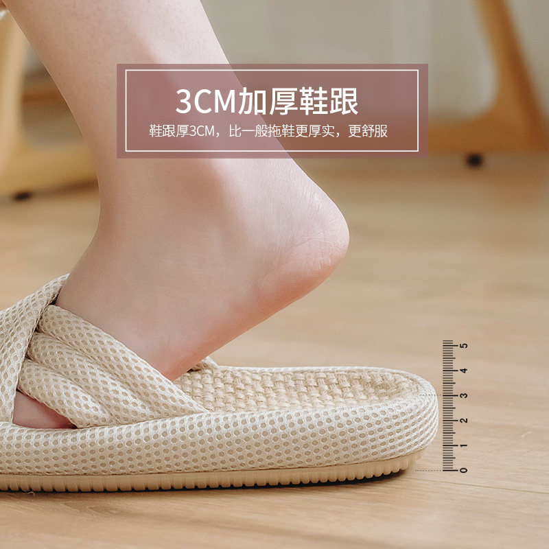 Youtun Linen Slippers Women's Floor Mute Indoor Home Furnishing Japanese Style Cotton Linen Thick Bottom Four Seasons Fabric Sweat-absorbing Men
