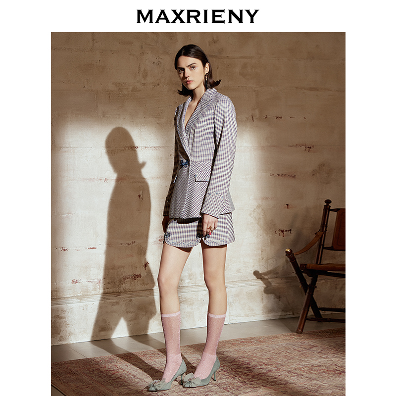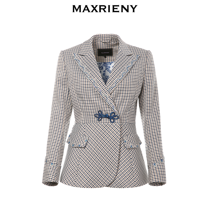 MAXRIENY spring suit plaid texture coat female country style design sense niche commuter small man