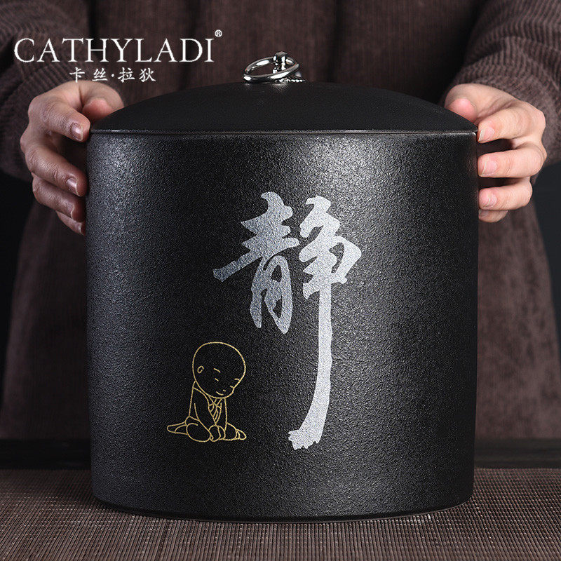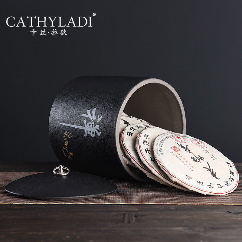 Black pottery seven cake jar-Zen black pottery seven cake jar-Wu black pottery seven cake jar-Jing black pottery seven cake jar-Plum black pottery seven cake jar-Blue black pottery seven cake jar-Bamboo black pottery seven cake jar-chrysanthemum