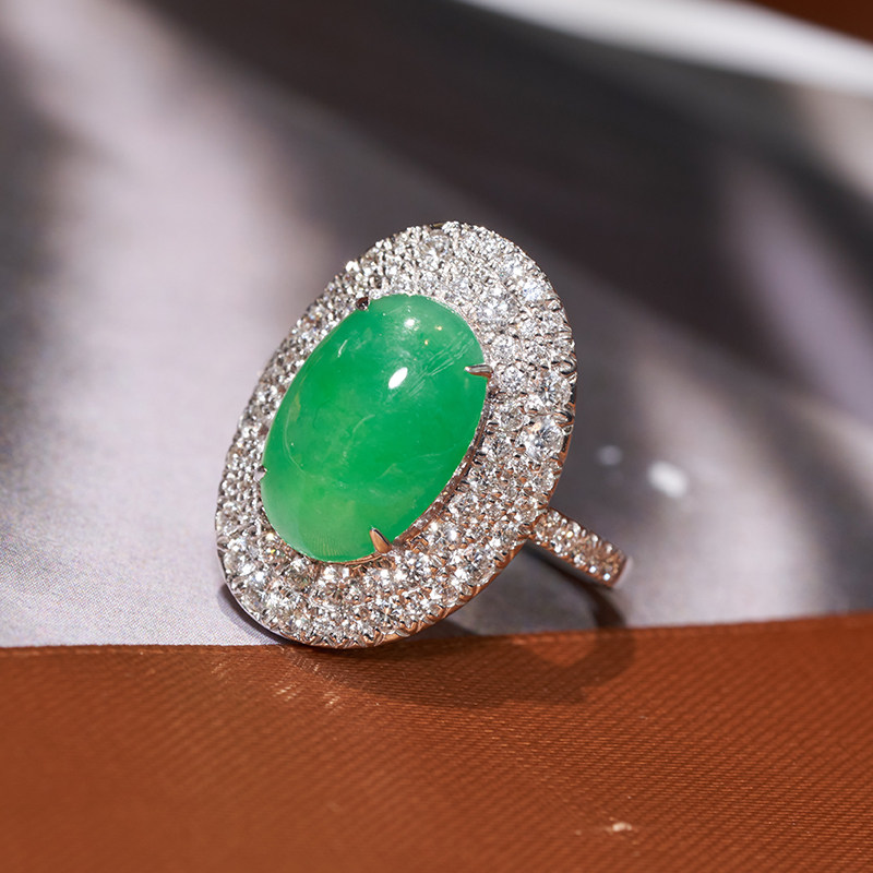 Natural ice of fruit jewelry is full of green emerald ring Myanmar A - cargo 18k diamond tail ring set custom