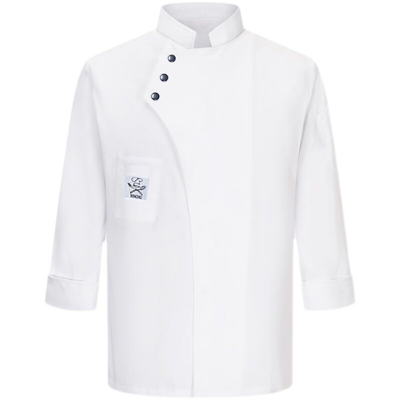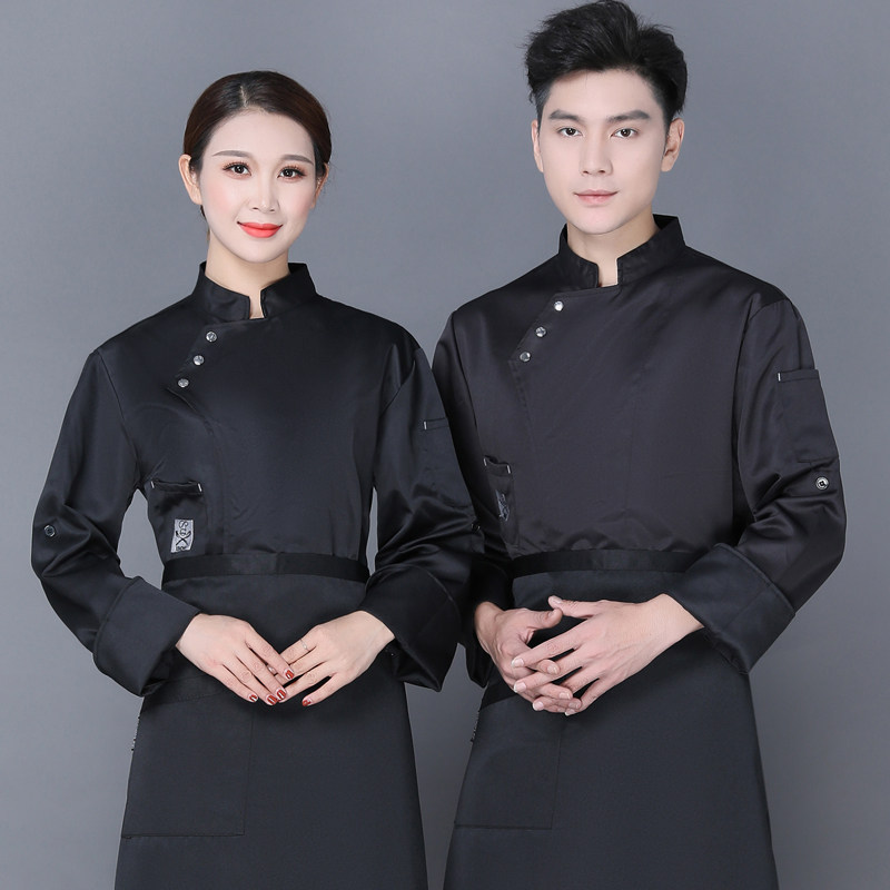 White long sleeve top (slanted three buttons) black long sleeve top (slanted three buttons long sleeves) Blue long sleeve single tops (slanted three buttons) white long sleeves white apron (slanted three buttons) black long sleeves