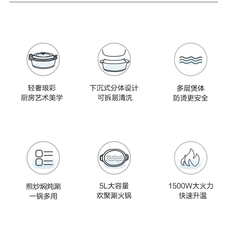 Supoir electric hot pot pan quick cooking pot home 5L large capacity multifunction sautlet cooking and frying in two style without dipping into the pan