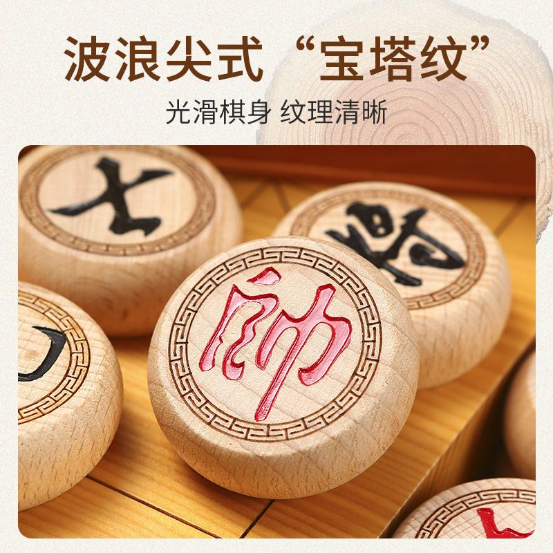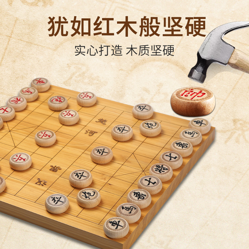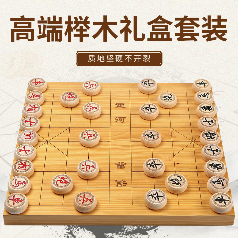 Chinese chess solid wood large home thickened with wooden chessboard plus extra large chess pieces students beginners send elders
