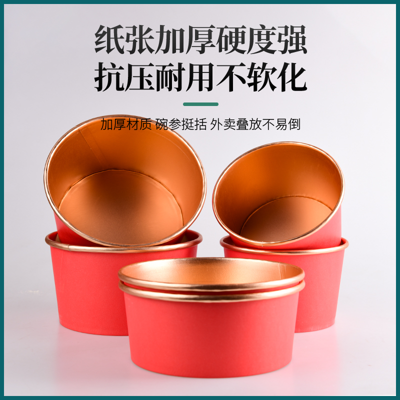 Gold foil paper bowl sample customization consultation customer service 24oz red rose gold bowl 100 9oz red rose gold bowl 100 30oz red rose gold bowl 100 16oz red rose