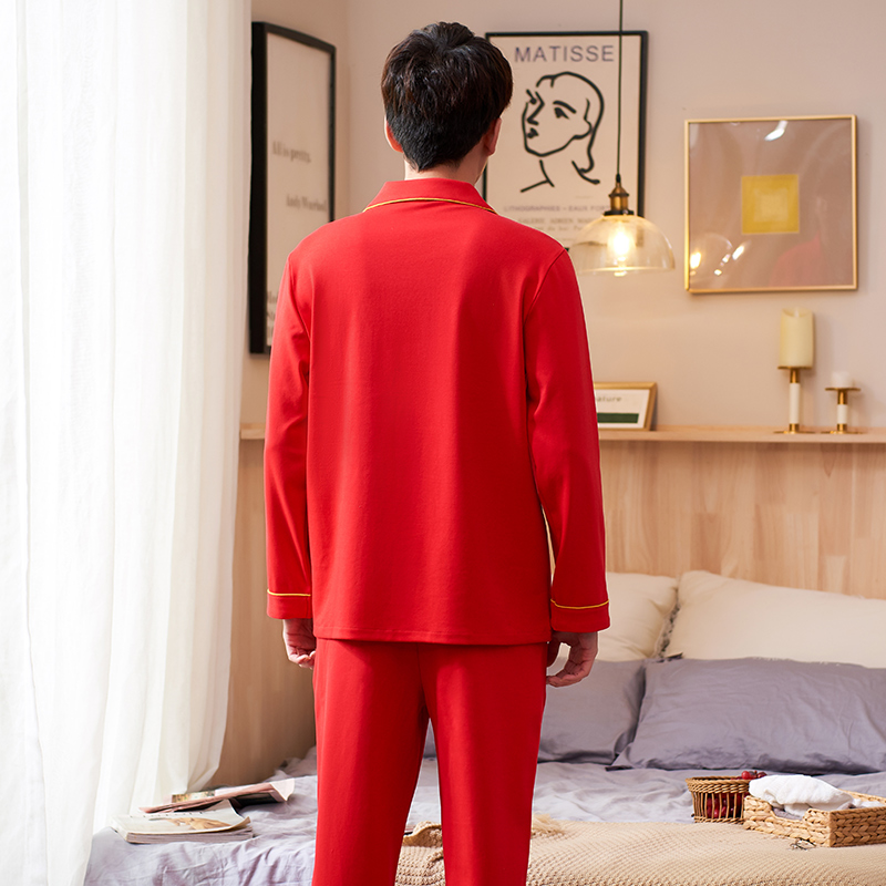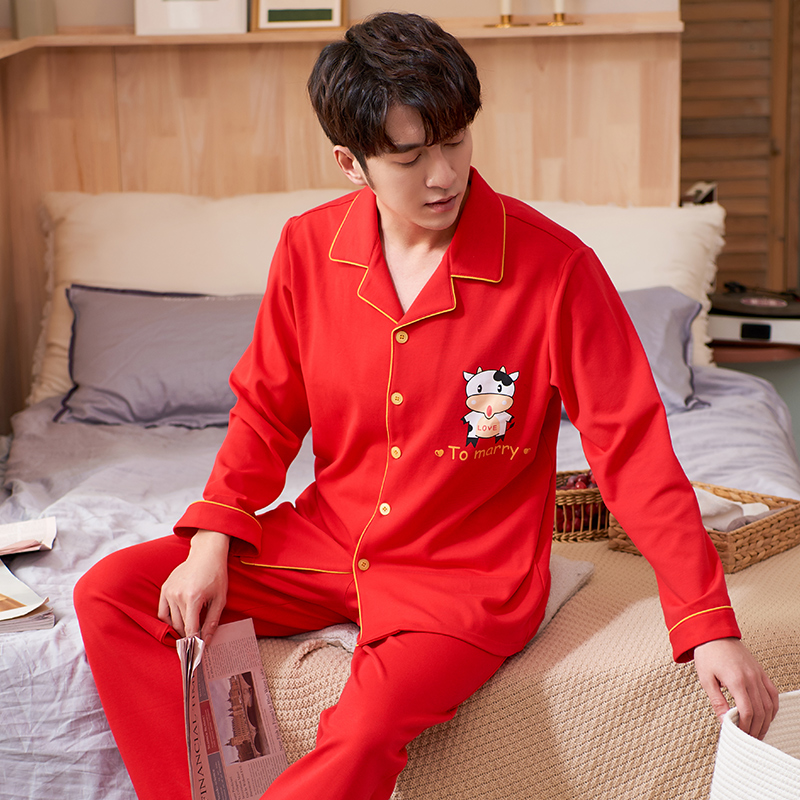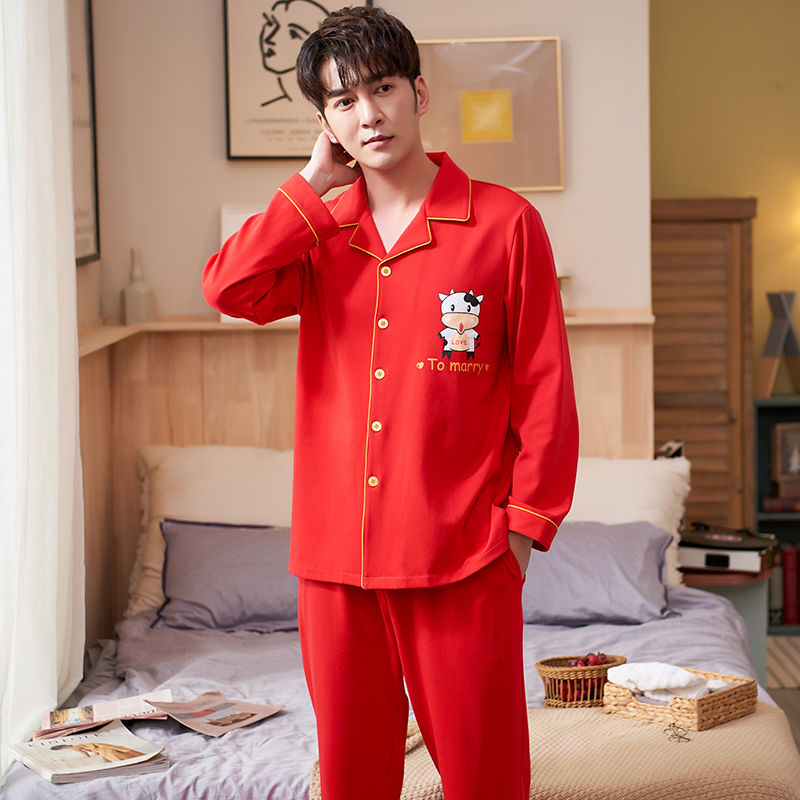 Men's Birth Year Pajamas Pure Cotton Long Sleeve Spring and Autumn Ox Year Wedding Red Autumn and Winter Cotton Homewear Wedding Suit