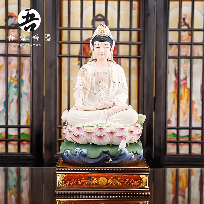 Get rich all the way, the base of the Guanyin Bodhisattva Buddha statue is raised, and the lotus seat is raised to worship the God of Wealth, Guan Gong.