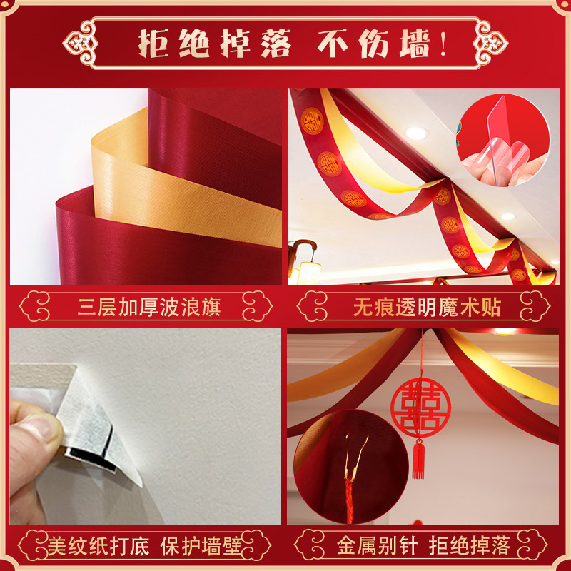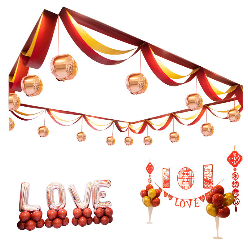 Wedding House Arrangement Laflower Wedding Living Room Decoration Wave Flag Color With Bedroom Overhanging Ceiling Happy Character Hanging Accessories Great Whole
