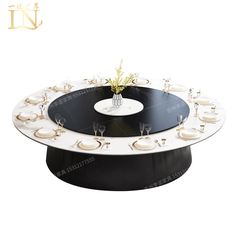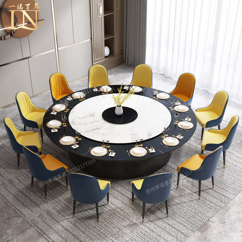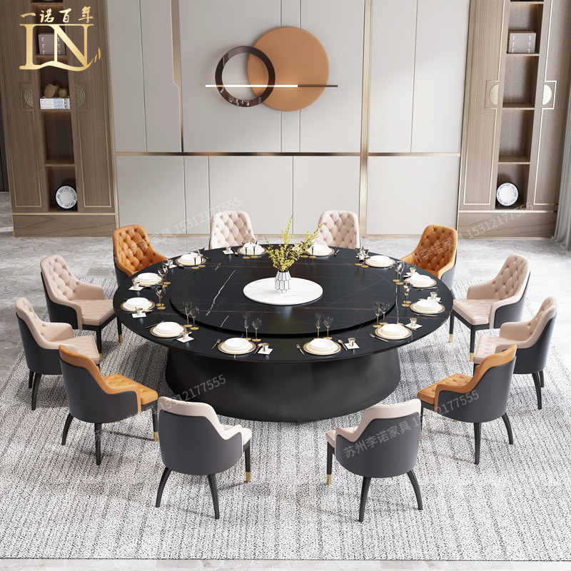Hotel Rock Plate Dining Table Electric Big Round Table With Turntable 15 20 People Hotel Clubhouse Dining Table And Chairs Combination