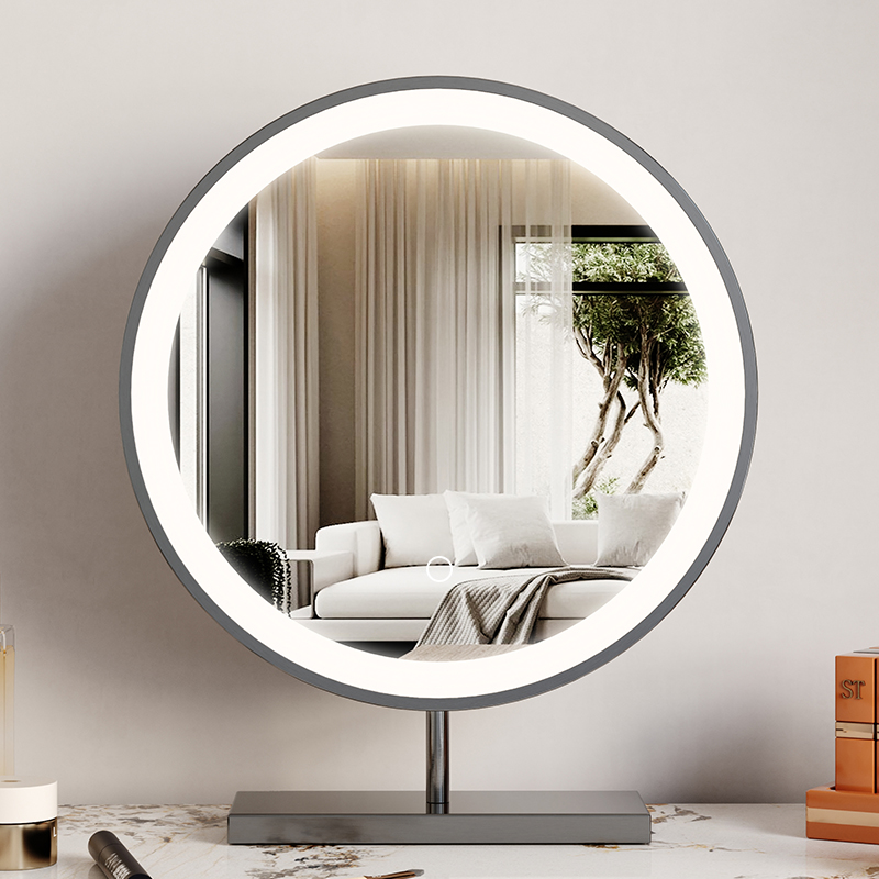 Stainless steel led with lamp make-up mirror Desktop Complement Optical Network Red Ins Large Round Mirror Beauty Dresser Dresser-Taobao