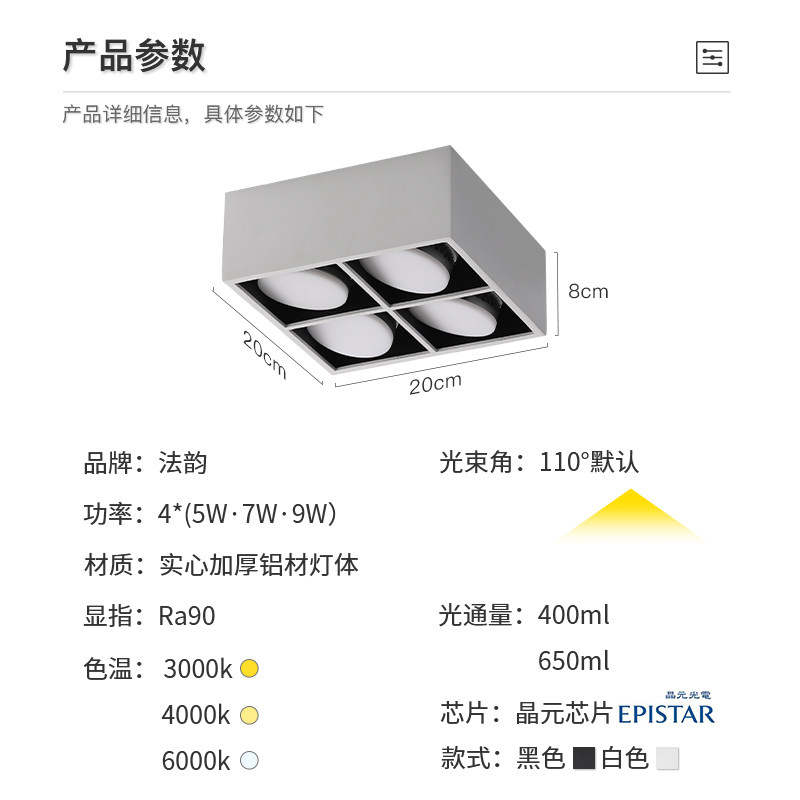 Black and white 4*9w-warm 3000k All black 4*5w-neutral light 4000k All black 4*5w-warm 3000k All white 4*9w-warm 3000k