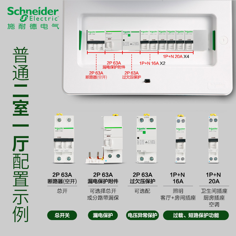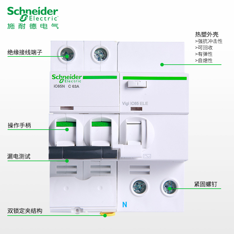 Schneider air switch with earth leakage protector 2P empty open switch 1P breaker 3P 3P 63A electric brake A9