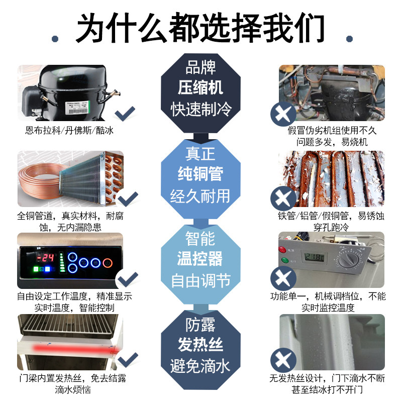 Commercial horizontal work typhoon cooling frost-free refrigerator freezer freezer interface