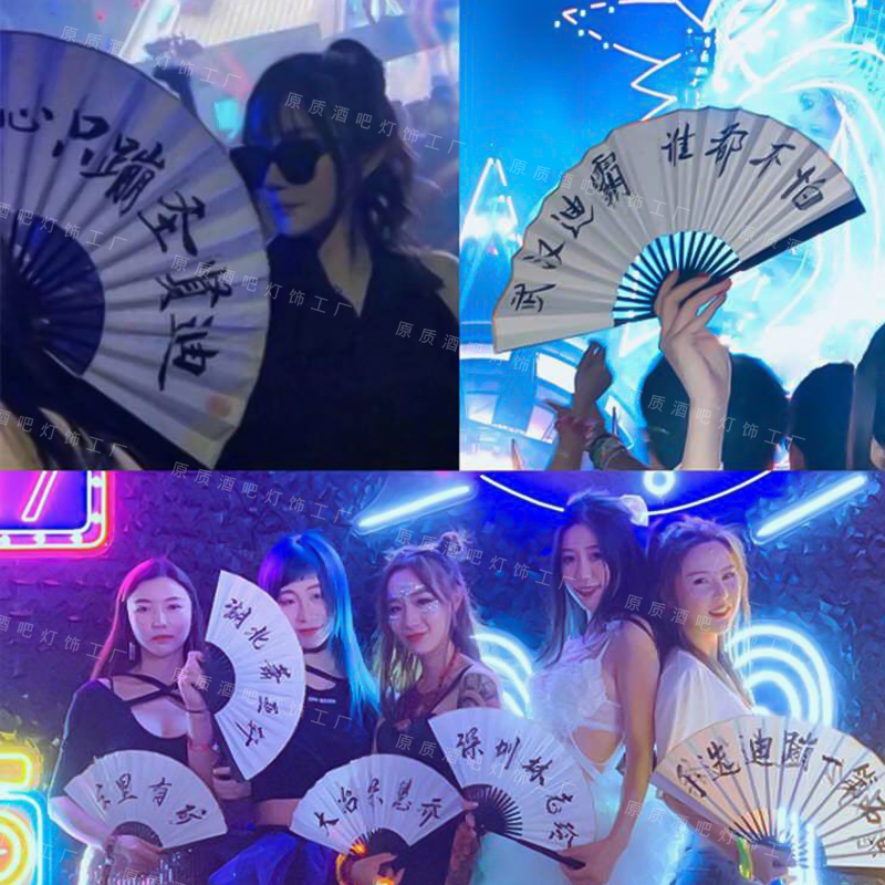 Bar Trampoline Folding Fan Entertainment Party Network Red Shivering Soundtrack China Wind Calligraphy Xuan Paper Trampoline Fan Props