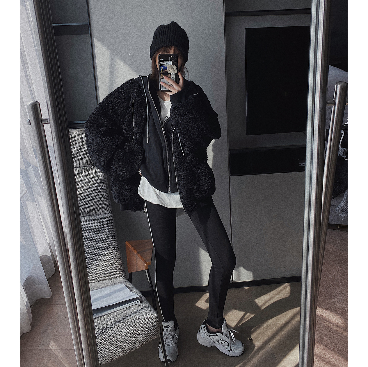 Small read custom vest with cap sports shirt lamb wool coat two sets 2021 new female Korean version easy blouse