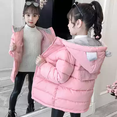 Hong Kong foreign pie hooded down cotton-padded clothing 2021 new medium-length version thick winter coat girl