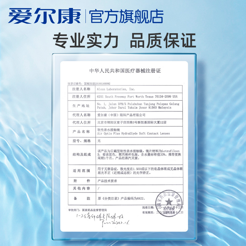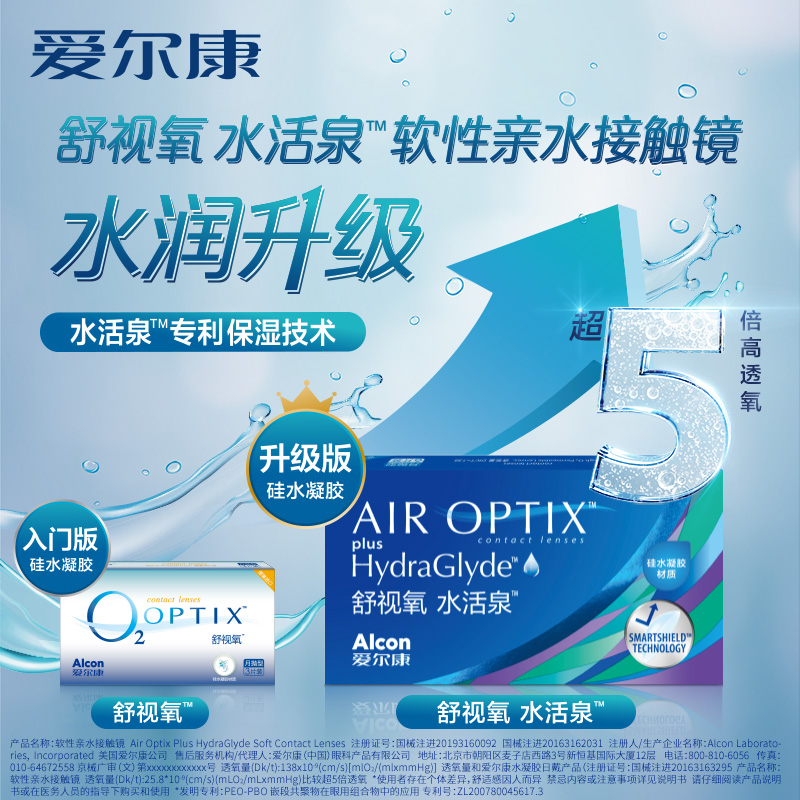 Alcon Shikang official flagship store Shushi oxygen water active spring 2 pieces of invisible myopia monthly throwing silicon hydrogel transparent