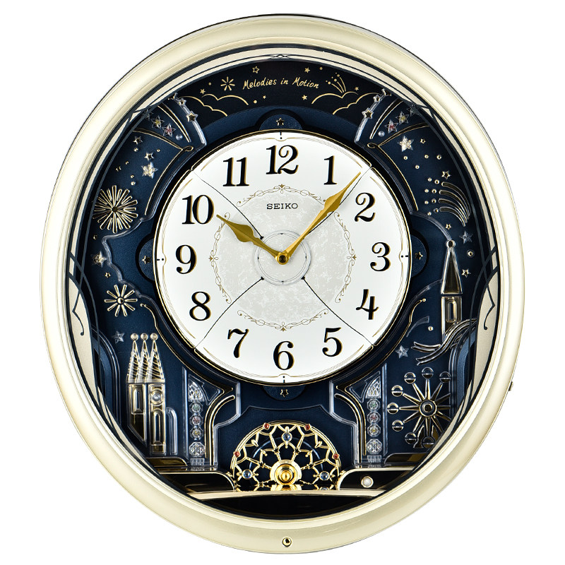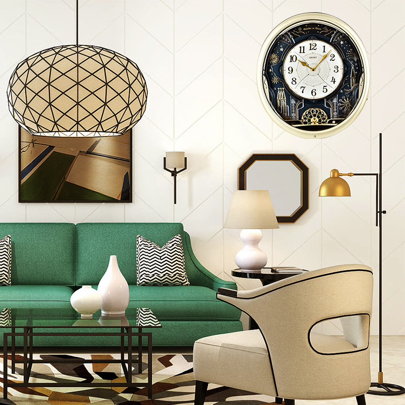 SEIKO Japan Seiko music wall clock atmospheric European LED lantern creative golden quartz clock living room music clock