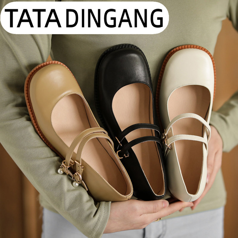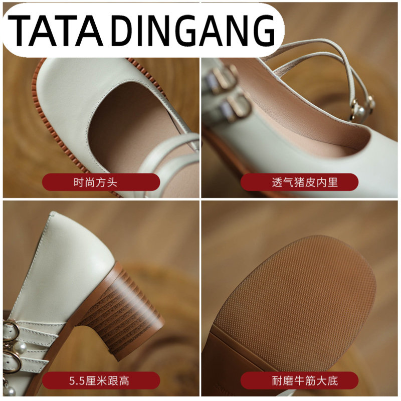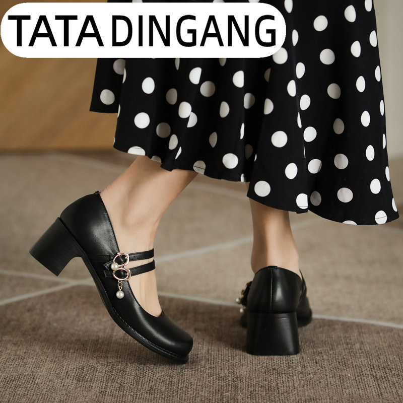 TATA DINGDANG he and she jingle Mary Jane French pearl single shoes women's thick heel retro big head all-match shoes