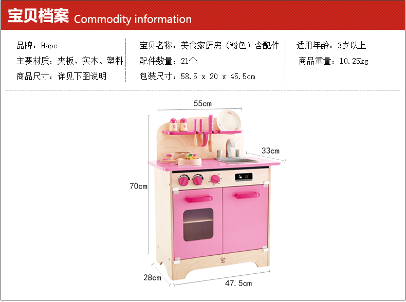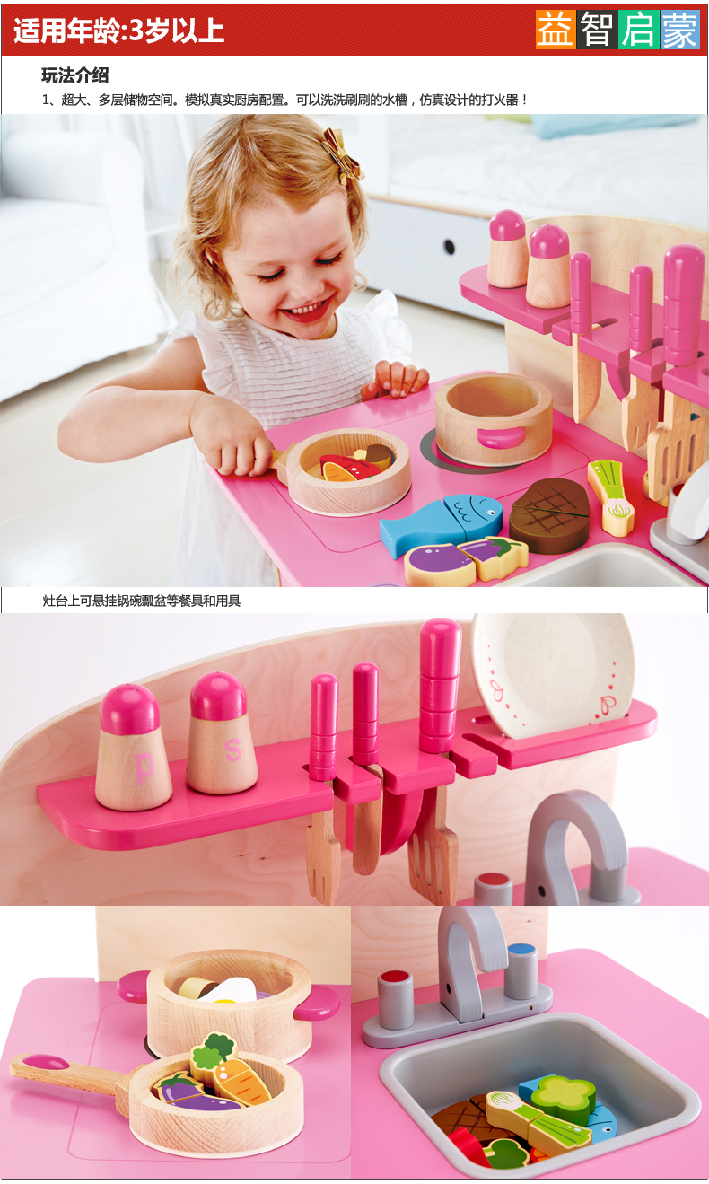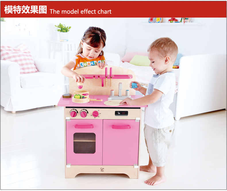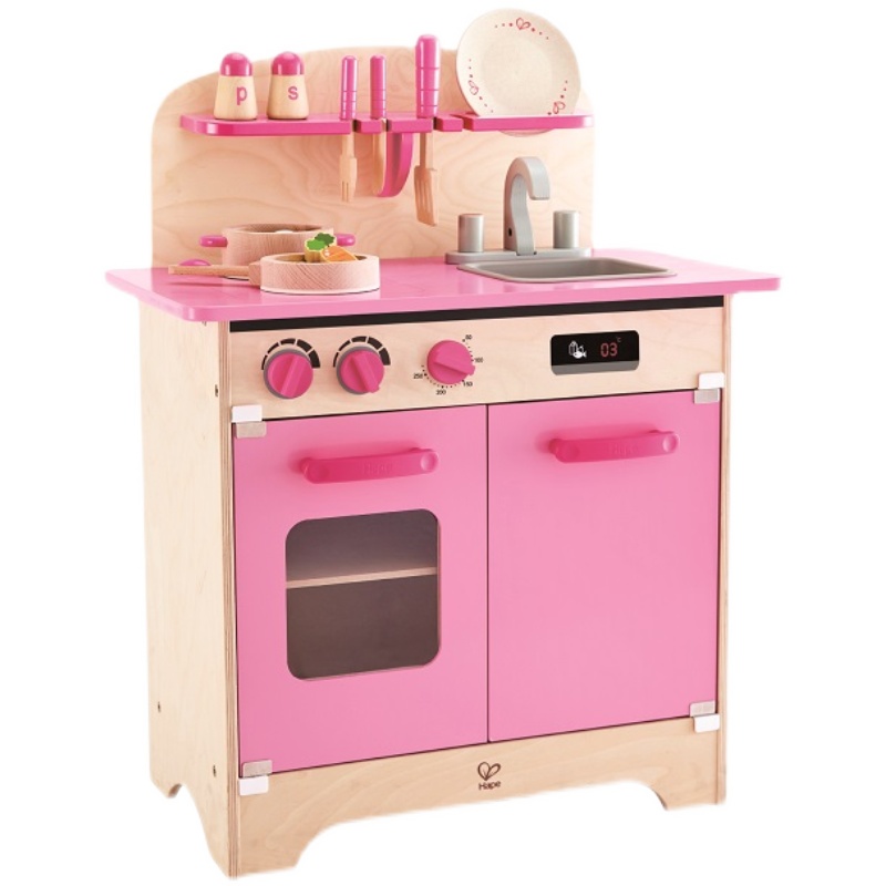 Hape Pink Big Kitchen Baby Dress Home Wine Suit Children Toy Emulation Girl Cooking Hearth Gourmet Wood