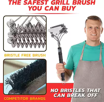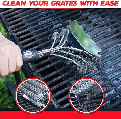 Scraper BBQ Barbecue Tool three-head stainless steel barbecue cleaning brush barbecue decontamination appliance steel wire barbecue mesh brush
