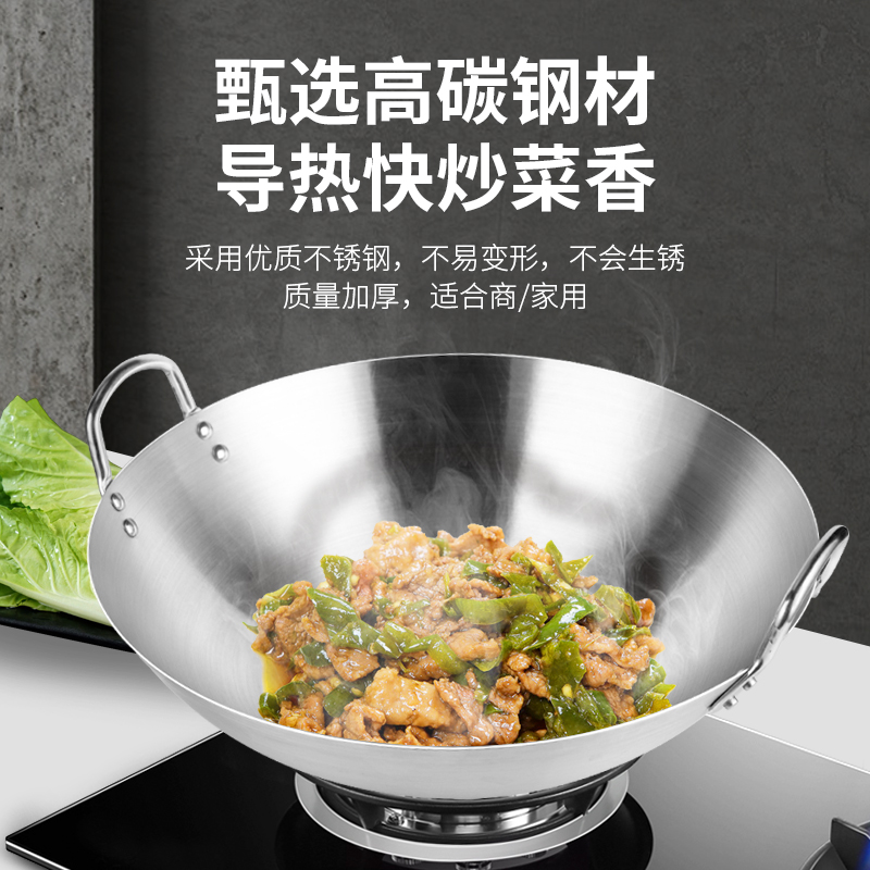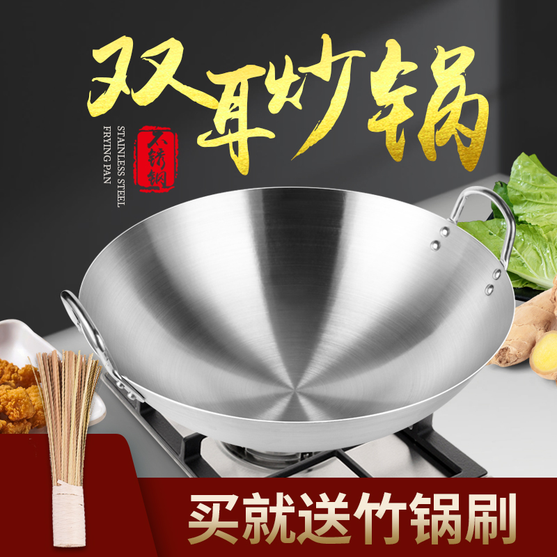 Double Ear Stainless Steel Frying Pan Frying Pan Large Number 40cm Stainless Steel Frying Pan 26cm Frying Pan Light Home Super Light