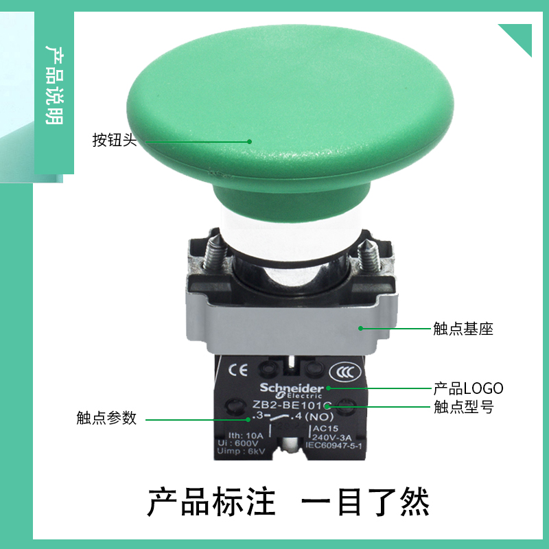Schneider big mushroom head XB2BR31C start button R42C stop button 60mm self-reset switch