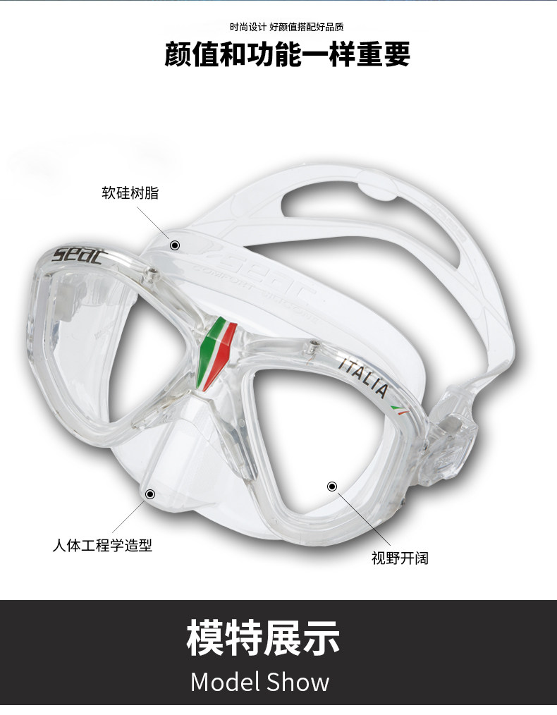 Italy SEAC diving mask ultra-clear large field of vision original scuba diving mask snorkeling mask