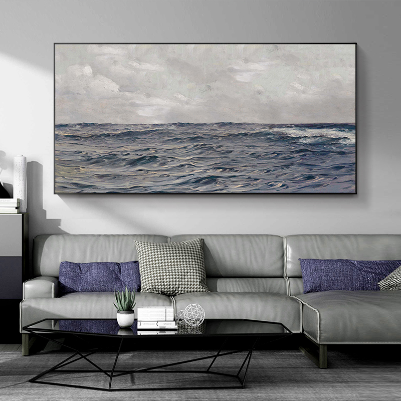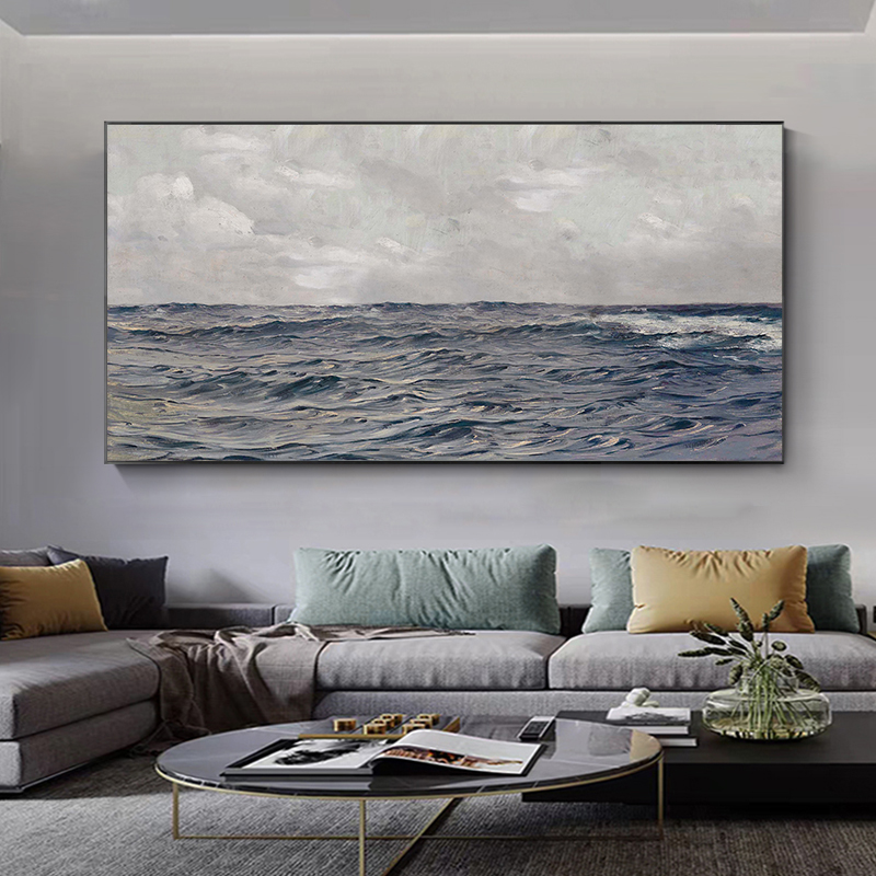Pure Hand Painted Oil Painting Abstract Living Room Decoration Painting Sea Scenery Sofa Background Wall Hanging Painting Light Extravagant Size Fresco-Taobao