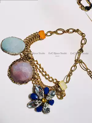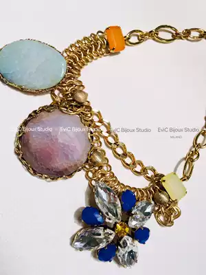 Big-name designer 24k gold-plated high-order Crystal Jade multi-treasure necklace
