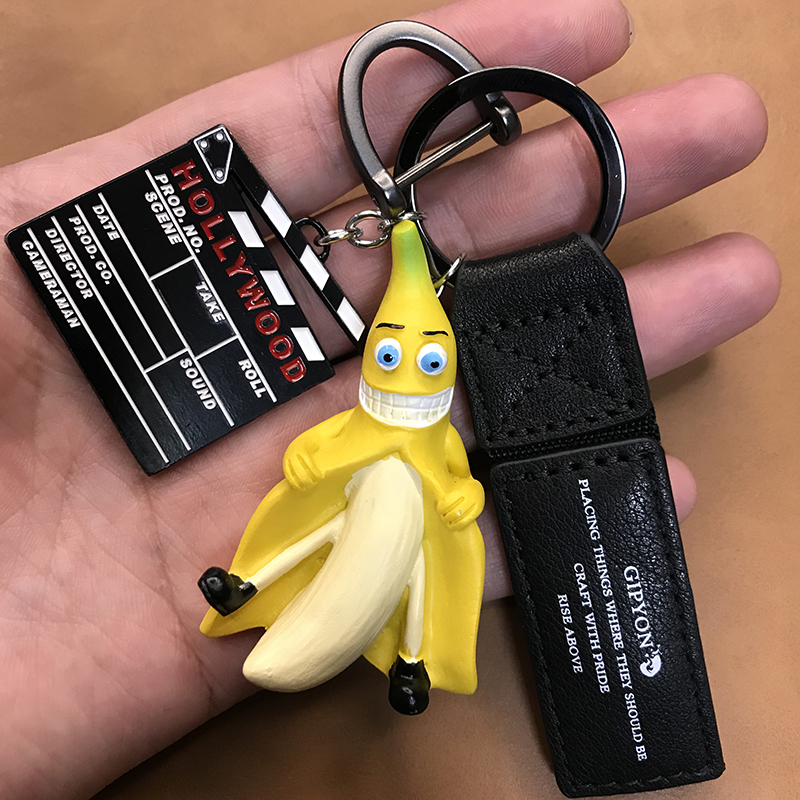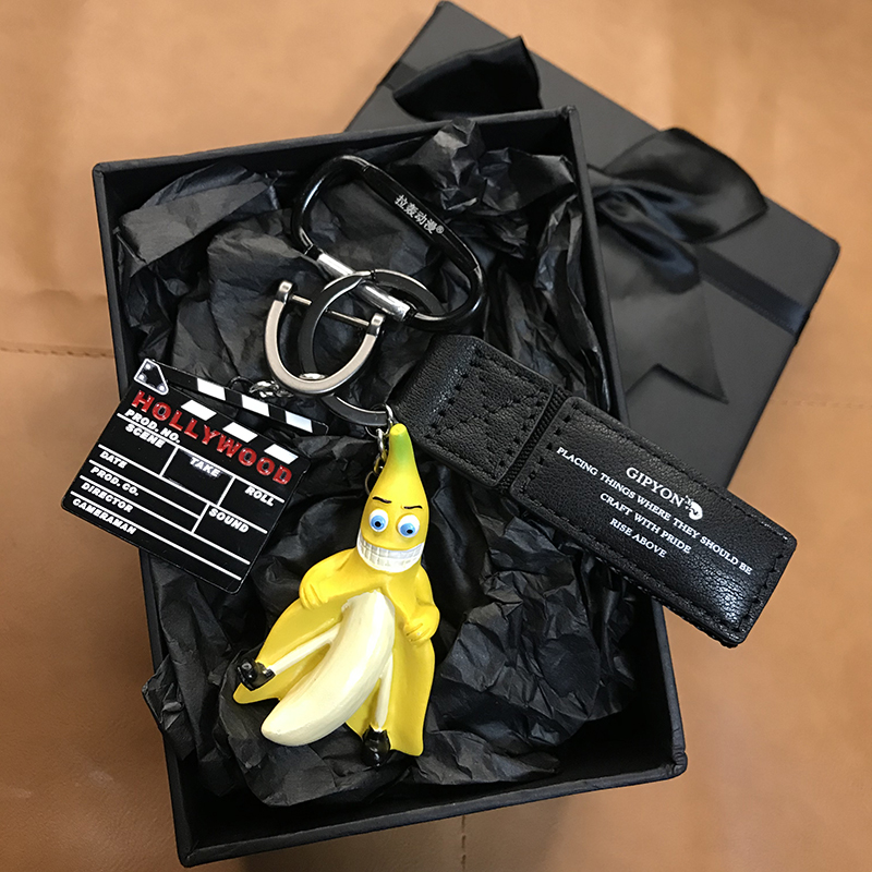 Banana man keychain spoof ins net red pull bang anime men and women creative birthday gift box car pendant