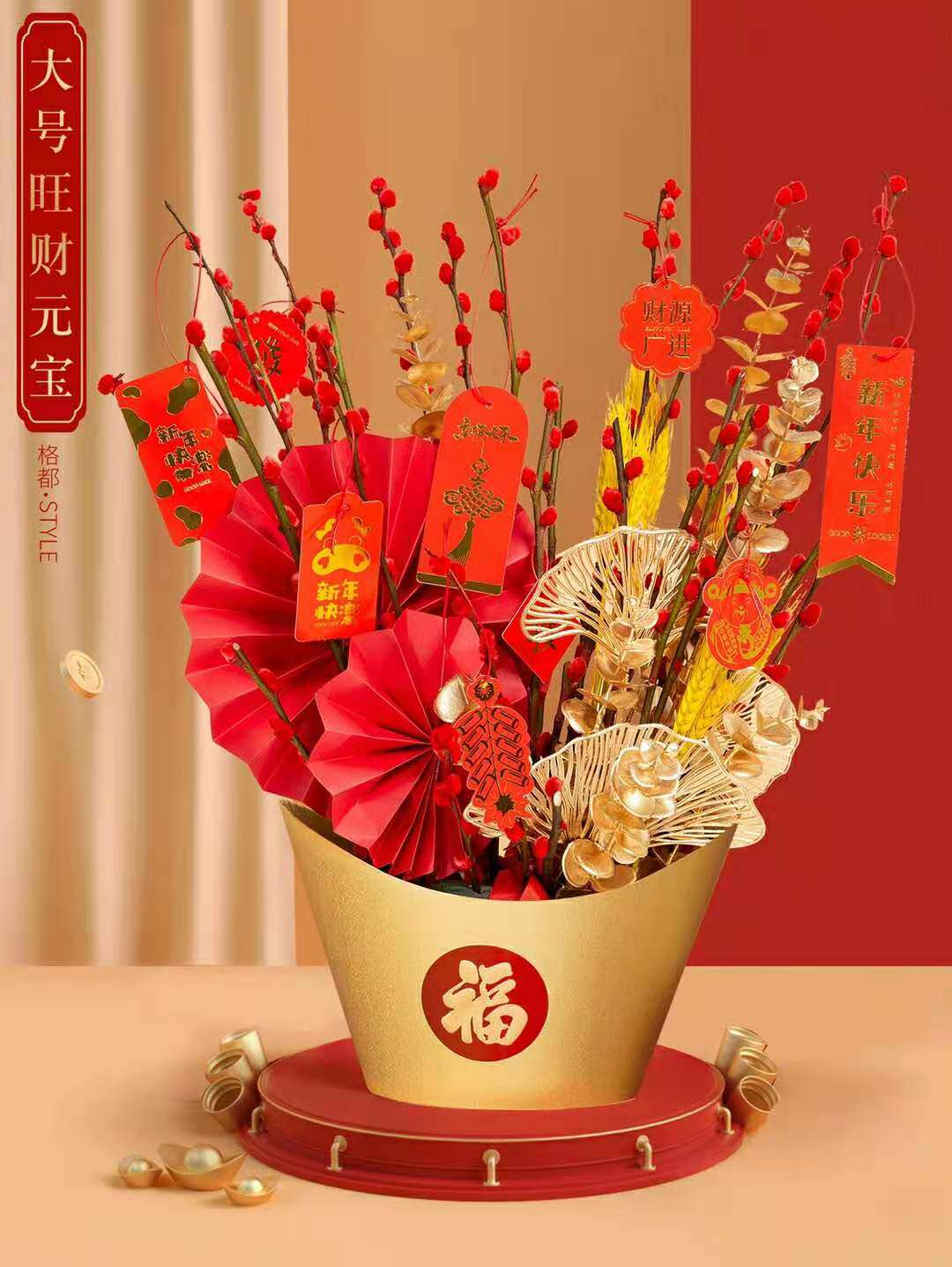 Golden small, gold, gold, treasure, red, red, large red, treasure red, pink folding fan red folding fan fan imitating winter green cutting 3 5 lanterns 3cm lantern recruited cat red