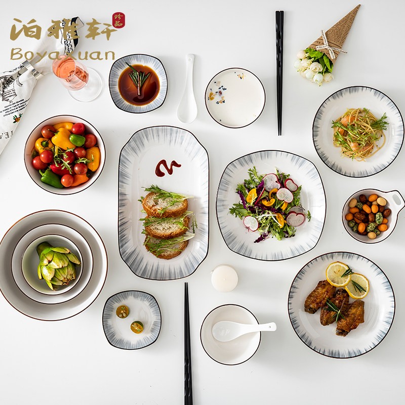Bowl Home Nordic Minimalist Cutlery Sets Ceramic Bowl Single Creative Personality Noodle Bowl without bronzing Large Bowl Soup Bowl tray