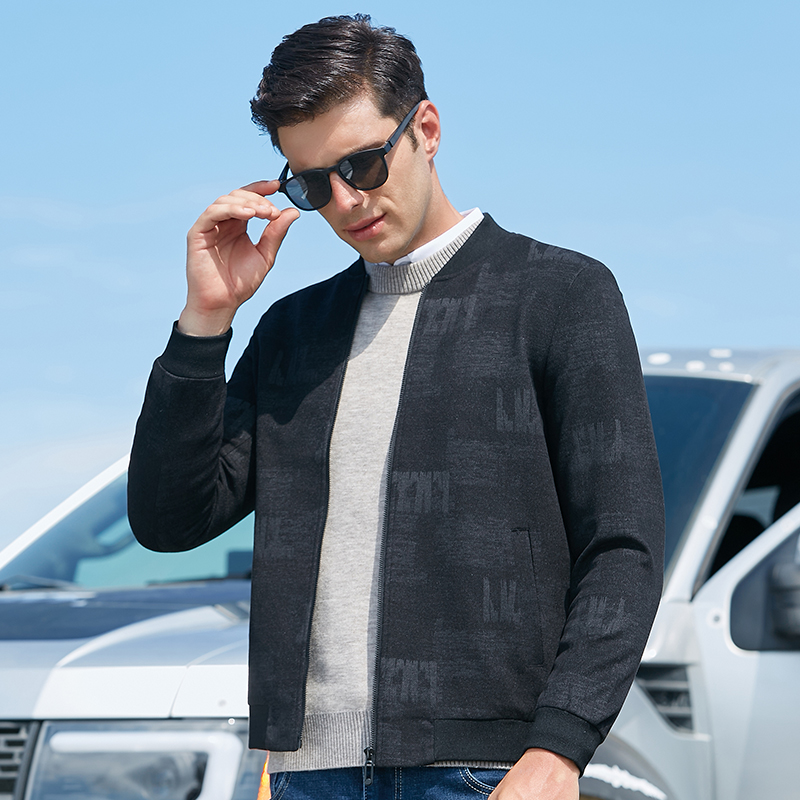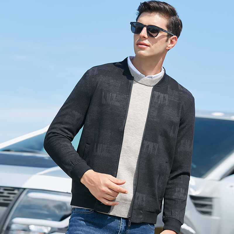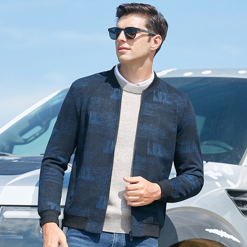 Han Boqi arch men's flagship store official printing jacket Male middle-aged business casual baseball suit slim jacket
