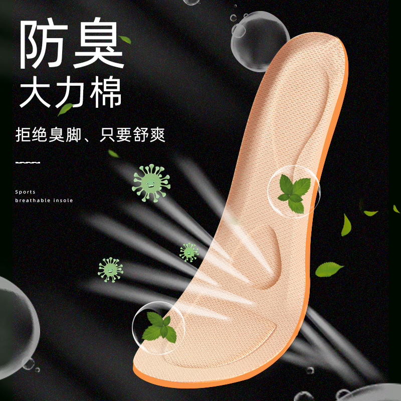 Sweat-absorbing and deodorizing sports insoles for men and women deodorant breathable soft bottom comfortable thickening shock-absorbing leather shoes memory cotton summer