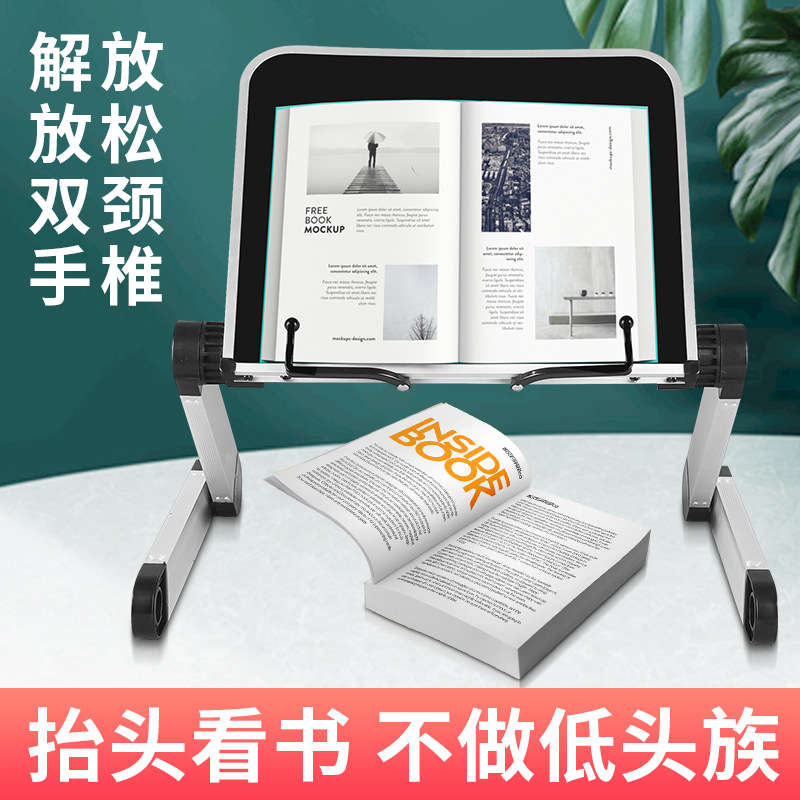Multifunctional reading shelf reading bookshelf adjustable lifting and retracting simple bed bookstand primary school students with book clipper children's vertical flip book examination research artifact reading shelf flat iPad bracket