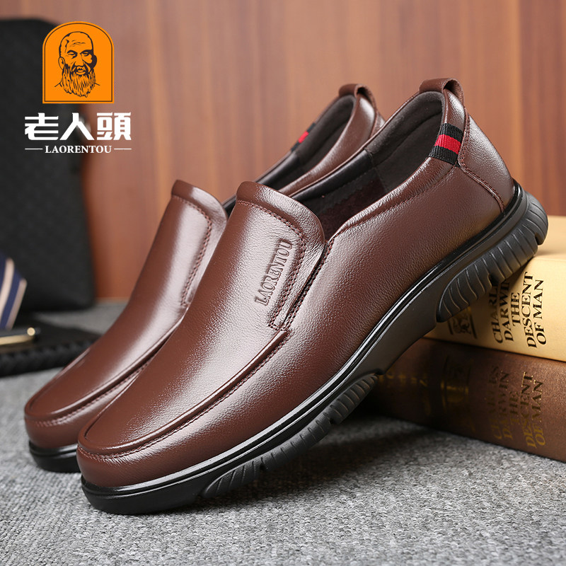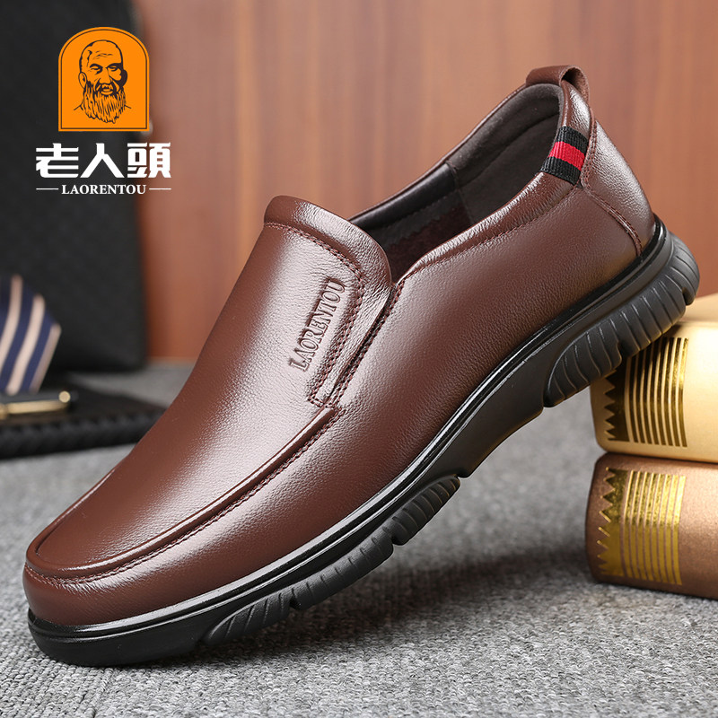 Old man's head leather shoes men's leather summer business casual soft bottom soft face leather summer style men's shoes daddy earth
