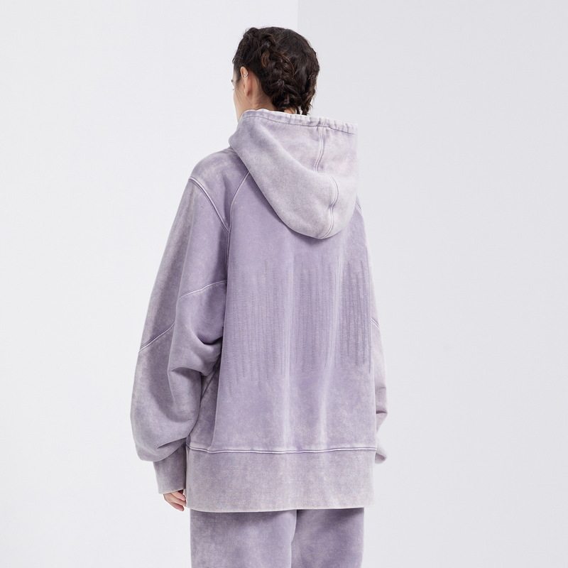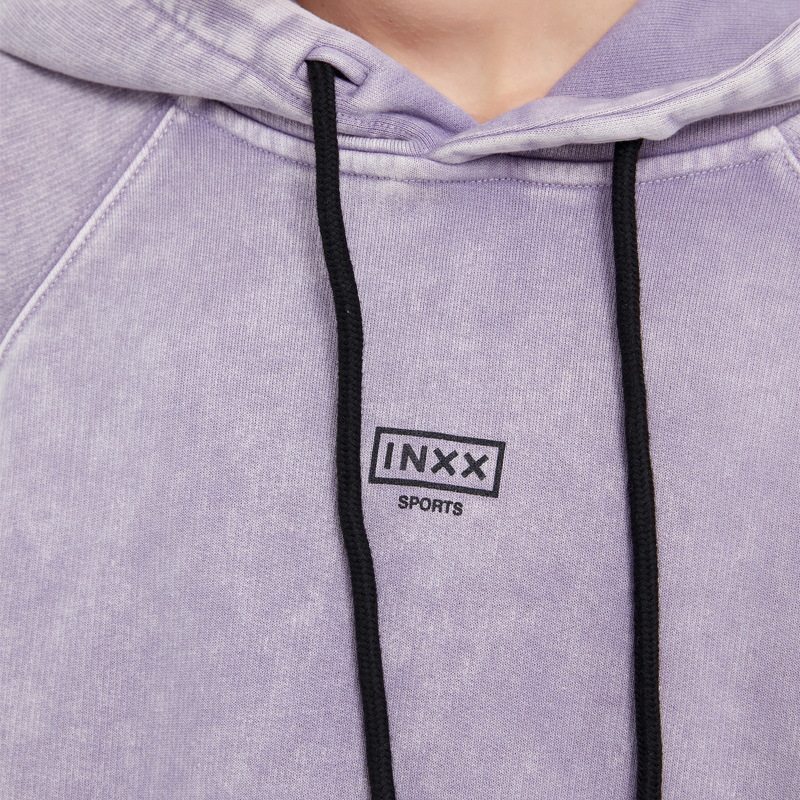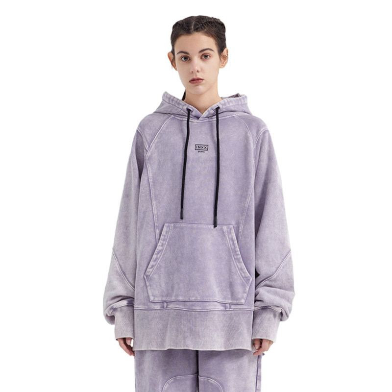 INXX SPORTS Washed Panel Topstitched Hooded Sweatshirt Loose Sports Pullover Unisex Kangaroo Bag