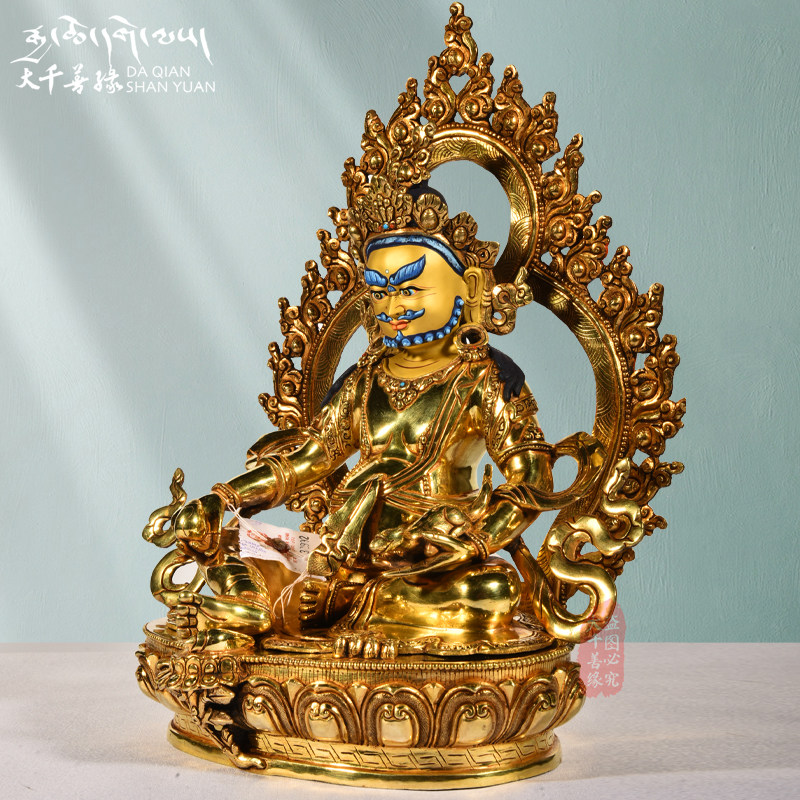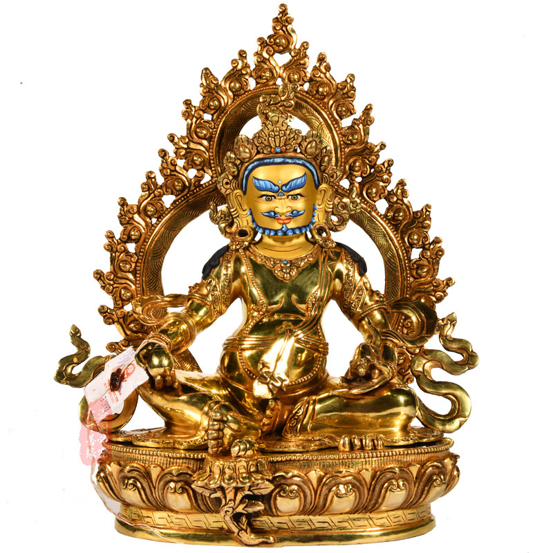 Nepal imports pure hand - made 1 foot yellow fortune Buddha Tibetan 10 inches Zambara copper gilded