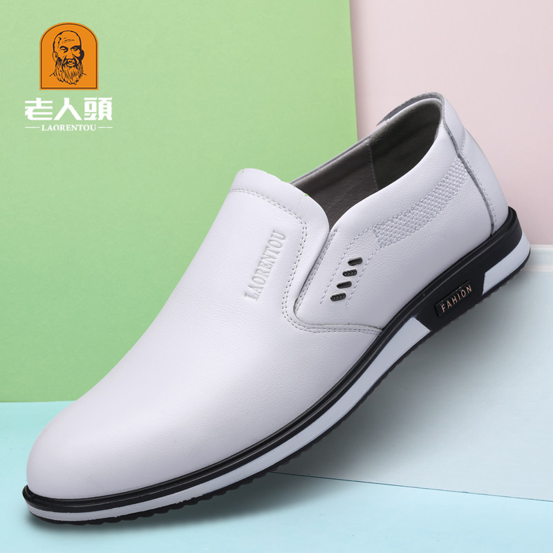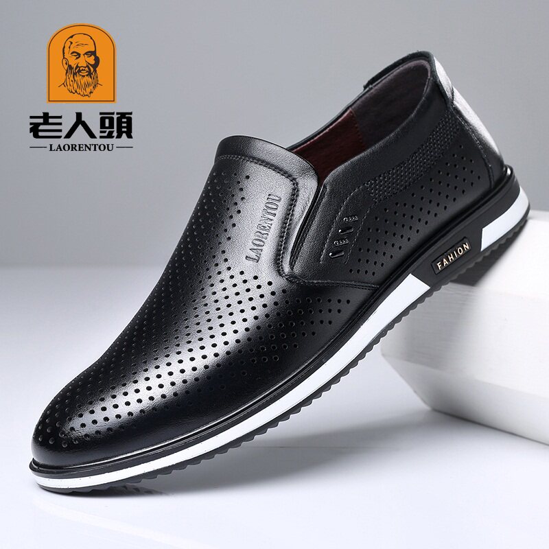 Old man's head cool leather shoes men genuine leather cards summer hollowed-out perforated vents white sandals 2022 new