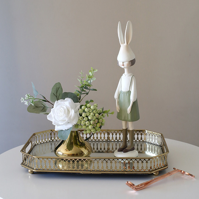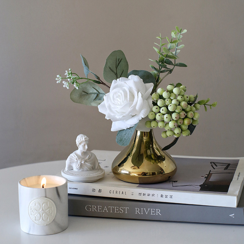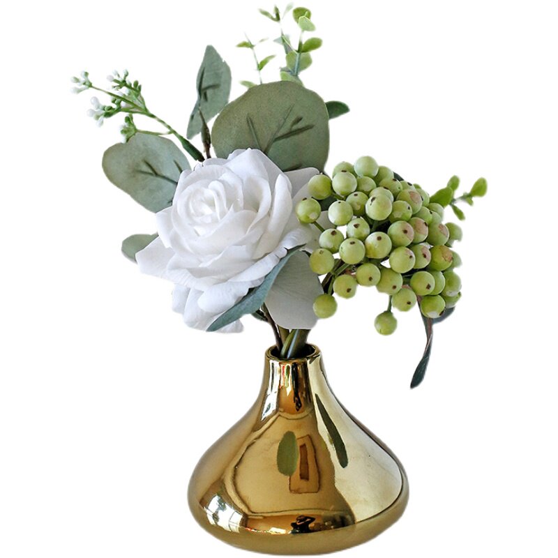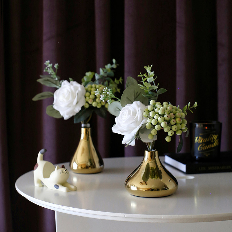 Light luxury golden vase set small flower art artificial flower price table flower decoration flower feel rose