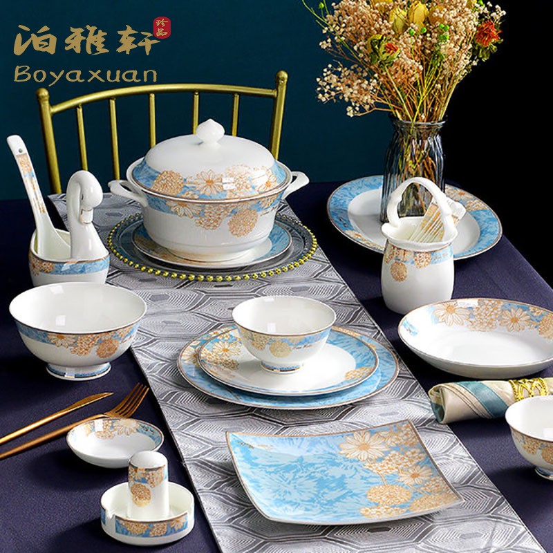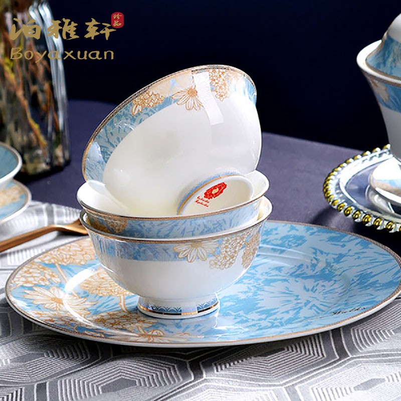 Poixuan Dishes Suit Home-Style Light Luxury High-end Bone China Cutlery Ceramic Cutlery Ceramic Bowl tray Chopsticks Joe Accommodate