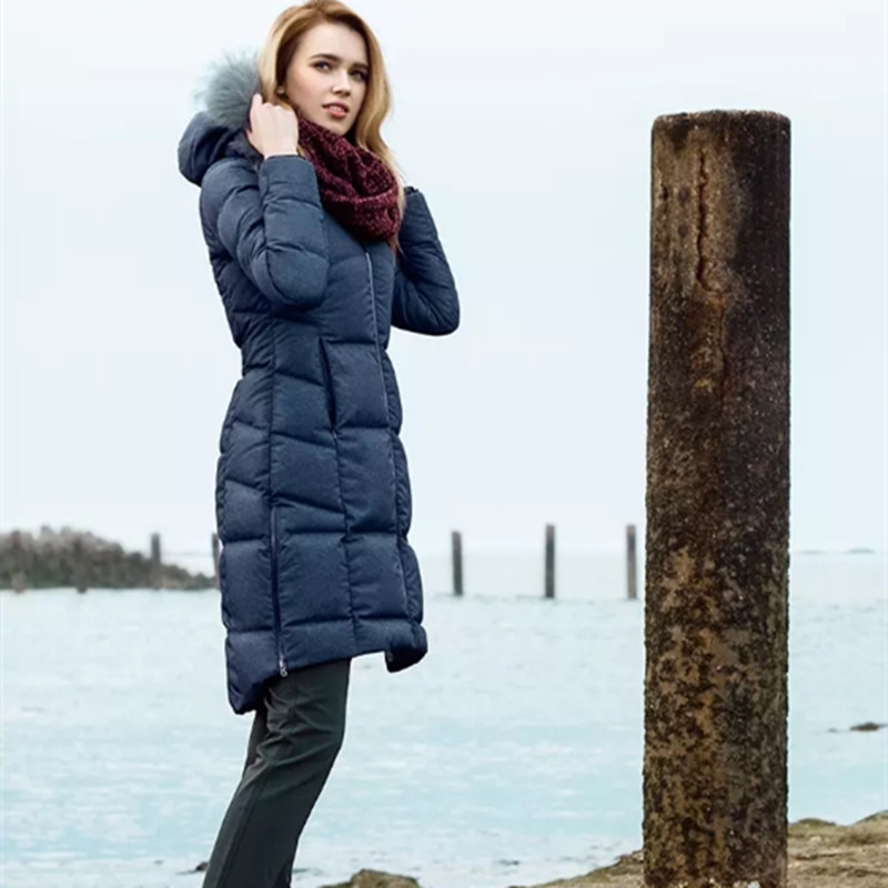 Clear cabin Sikkele flower yarn down jacket clothes female medium long version warm goose down clothing raccoon fur collar F8061206