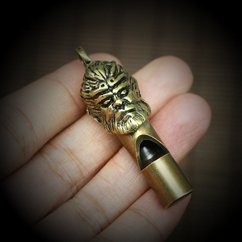 Monkey head whistle for old brass tap mouth whistle for old brass tap mouth whistle original elephant mouth whistle for old small kitchen knife pendant small axe pendant brass gossip card key buckle pendant yellow