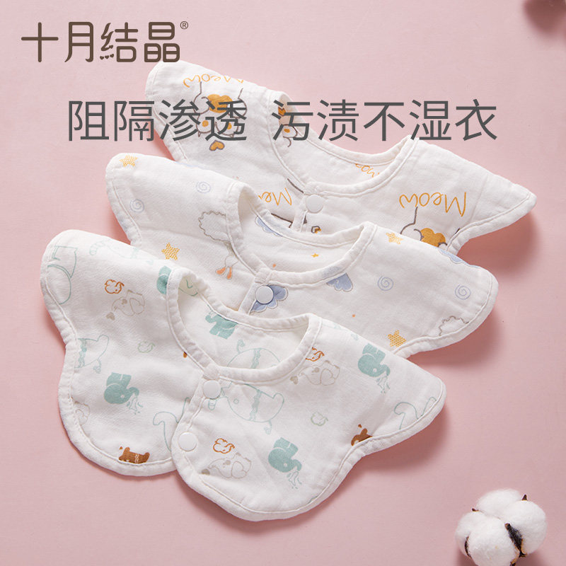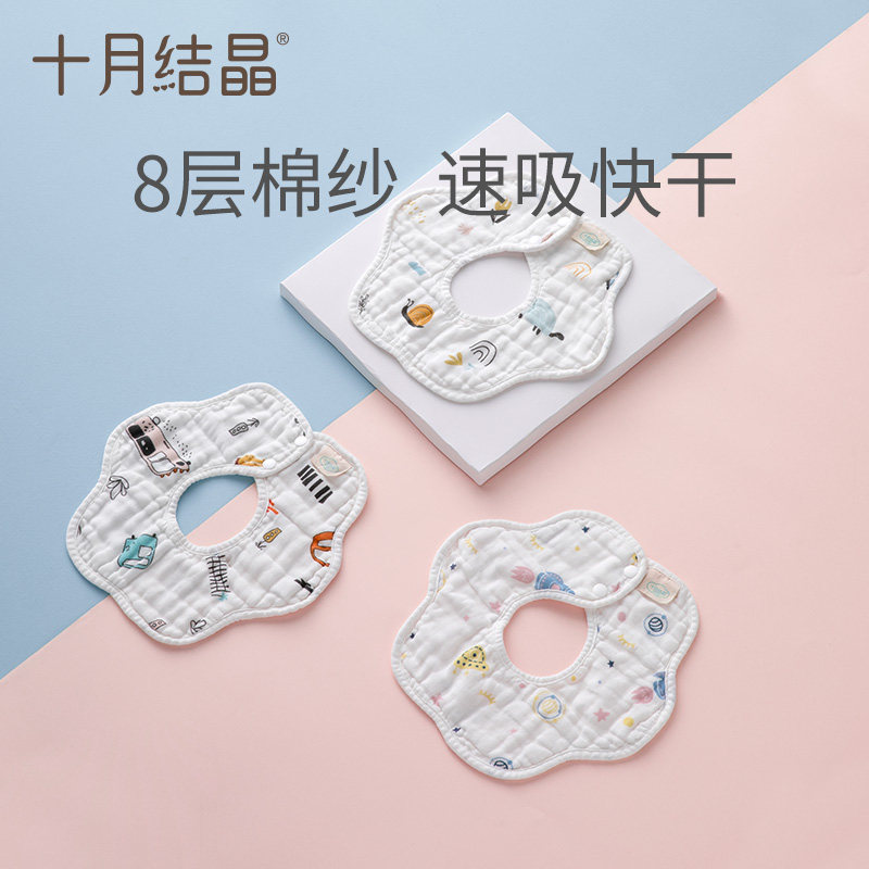 October crystal baby bib eating saliva towel pure cotton bib waterproof newborn baby 360 degrees can be rotated 3 strips